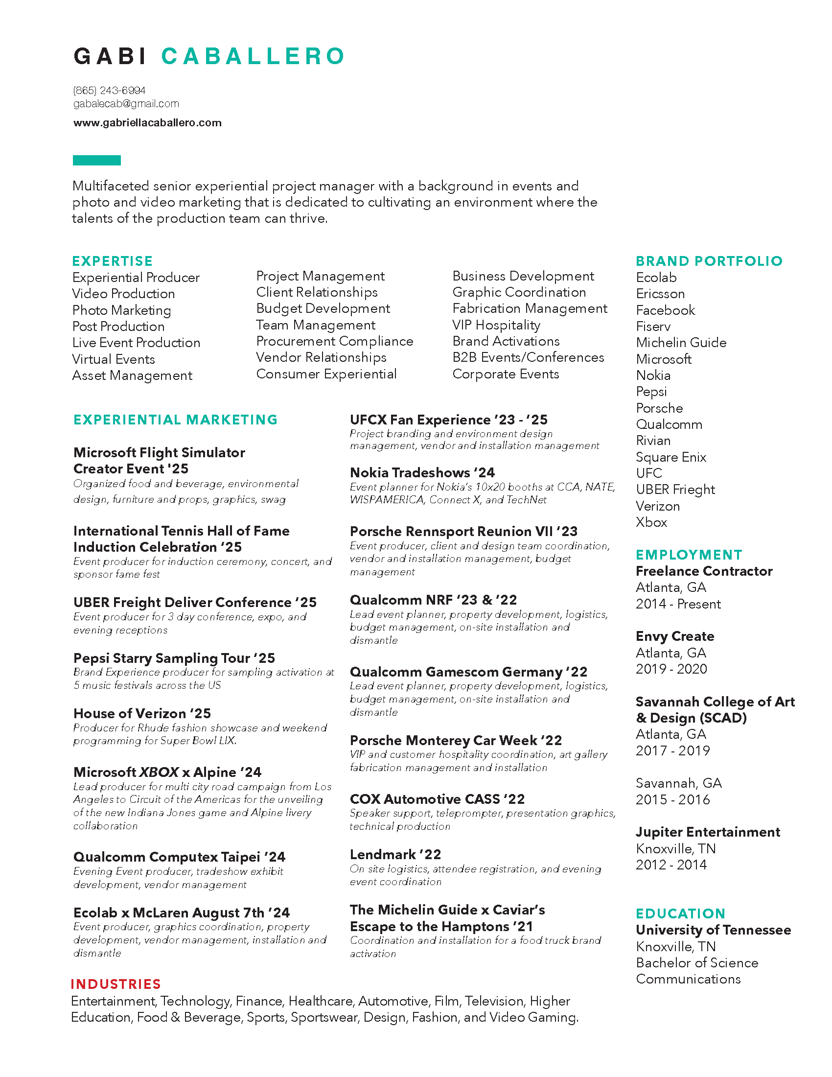 GABRIELLA CABALLERO EXPERIENTIAL PRODUCER